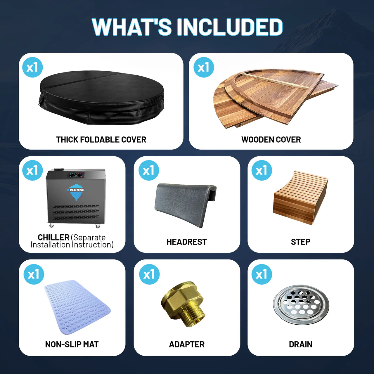 - DIMENSIONS: 62×42×28 in. cold plunge with 24 in. soaking depth for single-user comfort; holds up to 169 gallons of water.