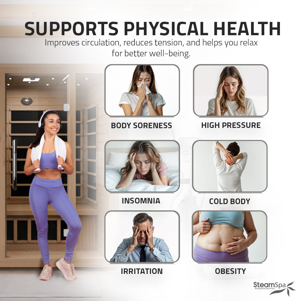 - COMFORTING DRY HEAT FROM LOW EMF, CARBON FAR INFRARED HEATING PANEL — our sauna uses the latest technology to generate a comfortable dry heat that soothes and relaxes, while relieving fatigue and promoting full-body well-being