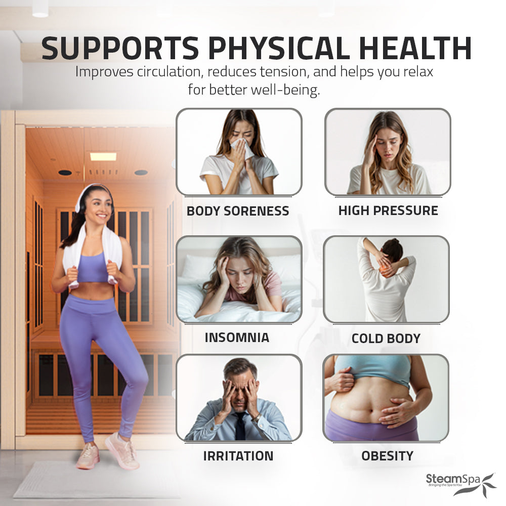 - COMFORTING DRY HEAT FROM LOW EMF, CARBON FAR INFRARED HEATING PANEL — our sauna uses the latest technology to generate a comfortable dry heat that soothes and relaxes, while relieving fatigue and promoting full-body well-being